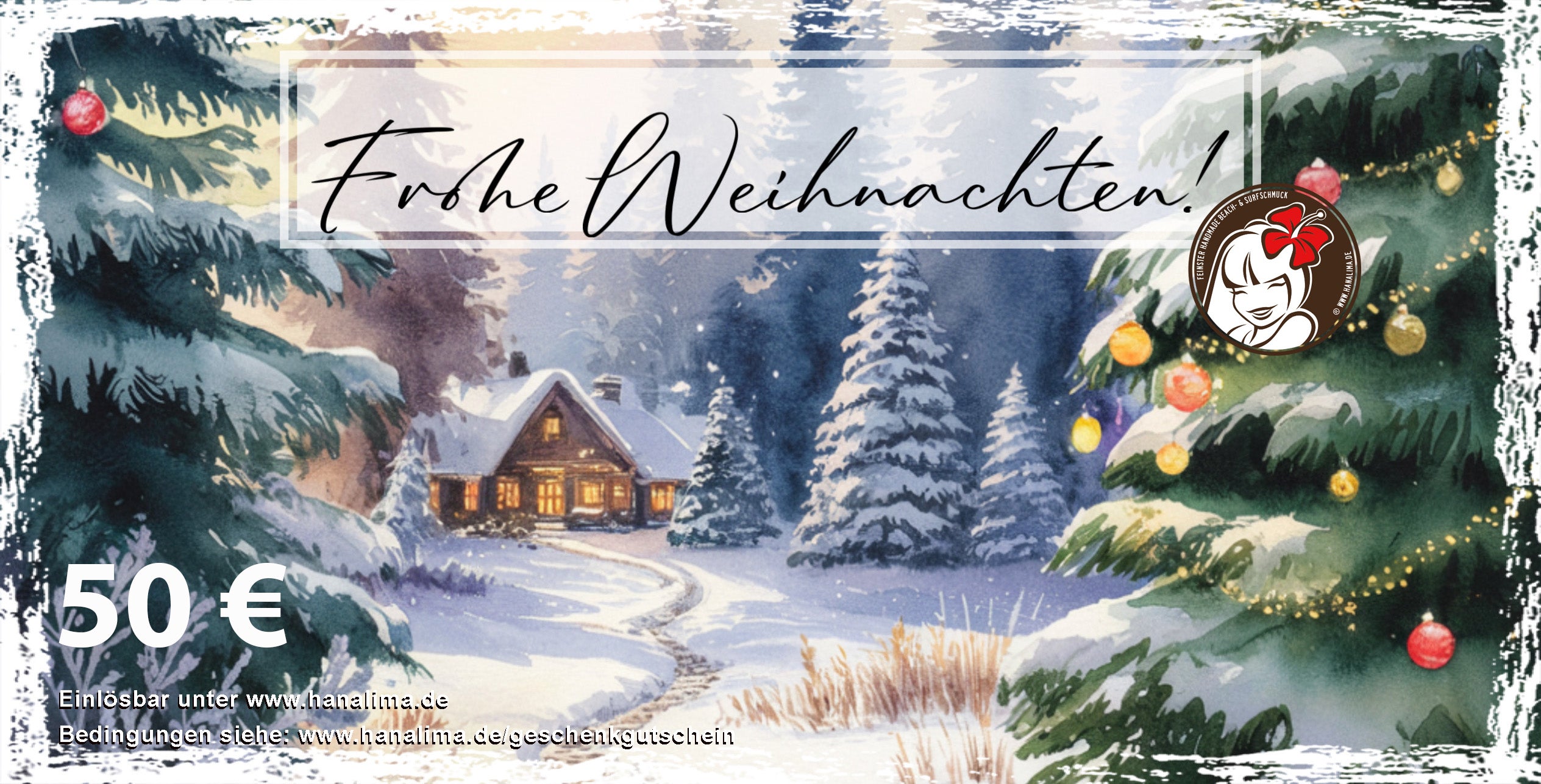 50 Euro Geschenkgutschein Weihnachtskarte elektronischer Gutschein zum Selbstausdruck