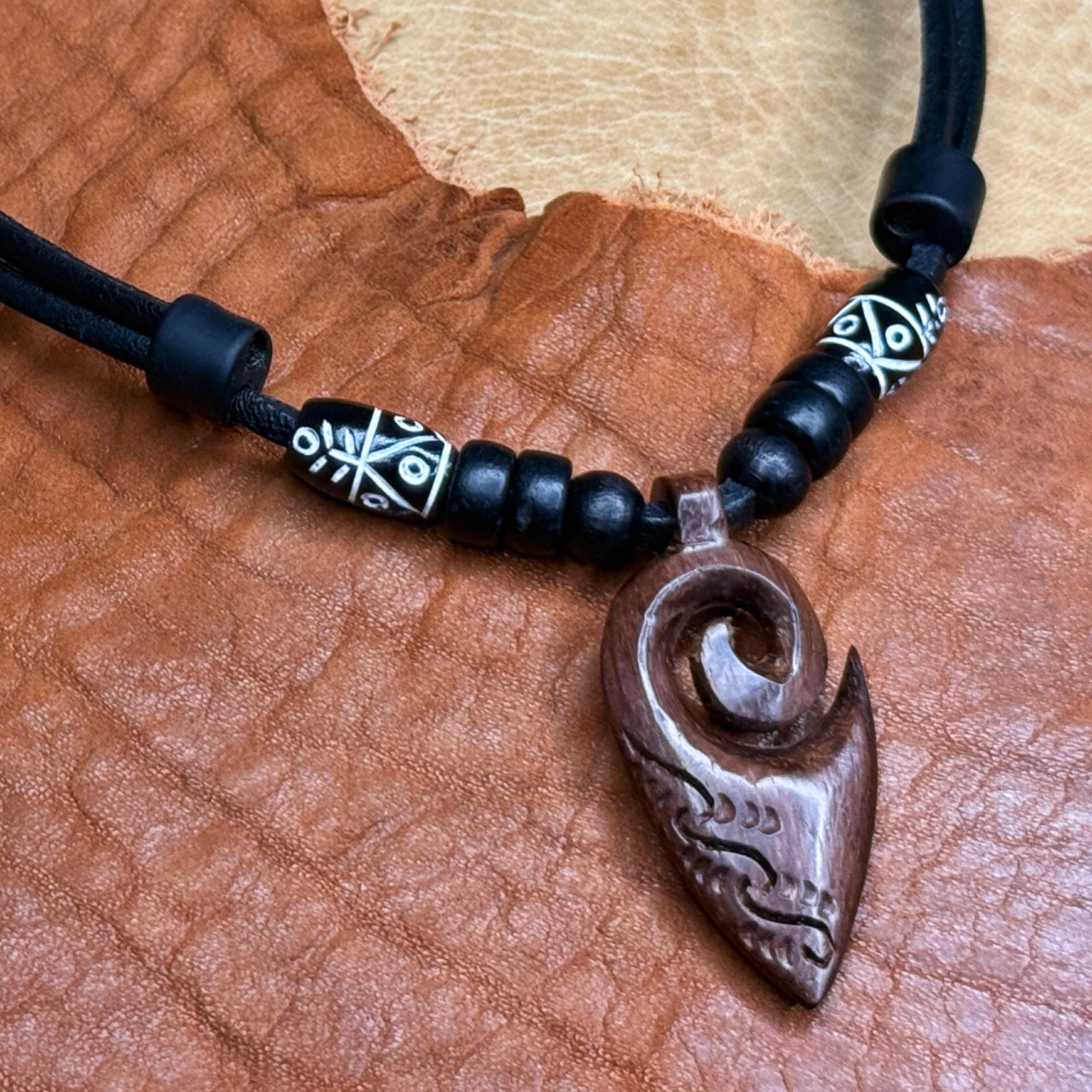Freundschaftskette Maori Koru Tribal Halskette Leder Kette Herren Damen - Modell 660