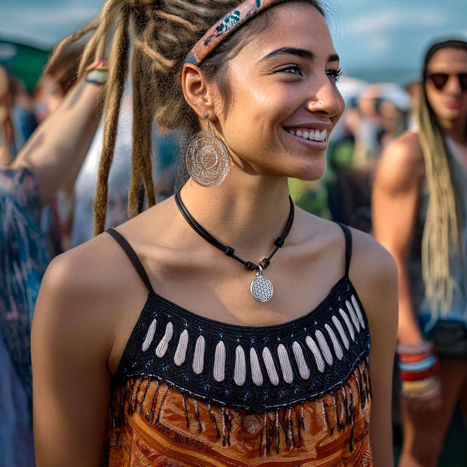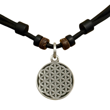 Halskette Blume des Lebens Lebensblume Surferkette Leder - Mo 1067