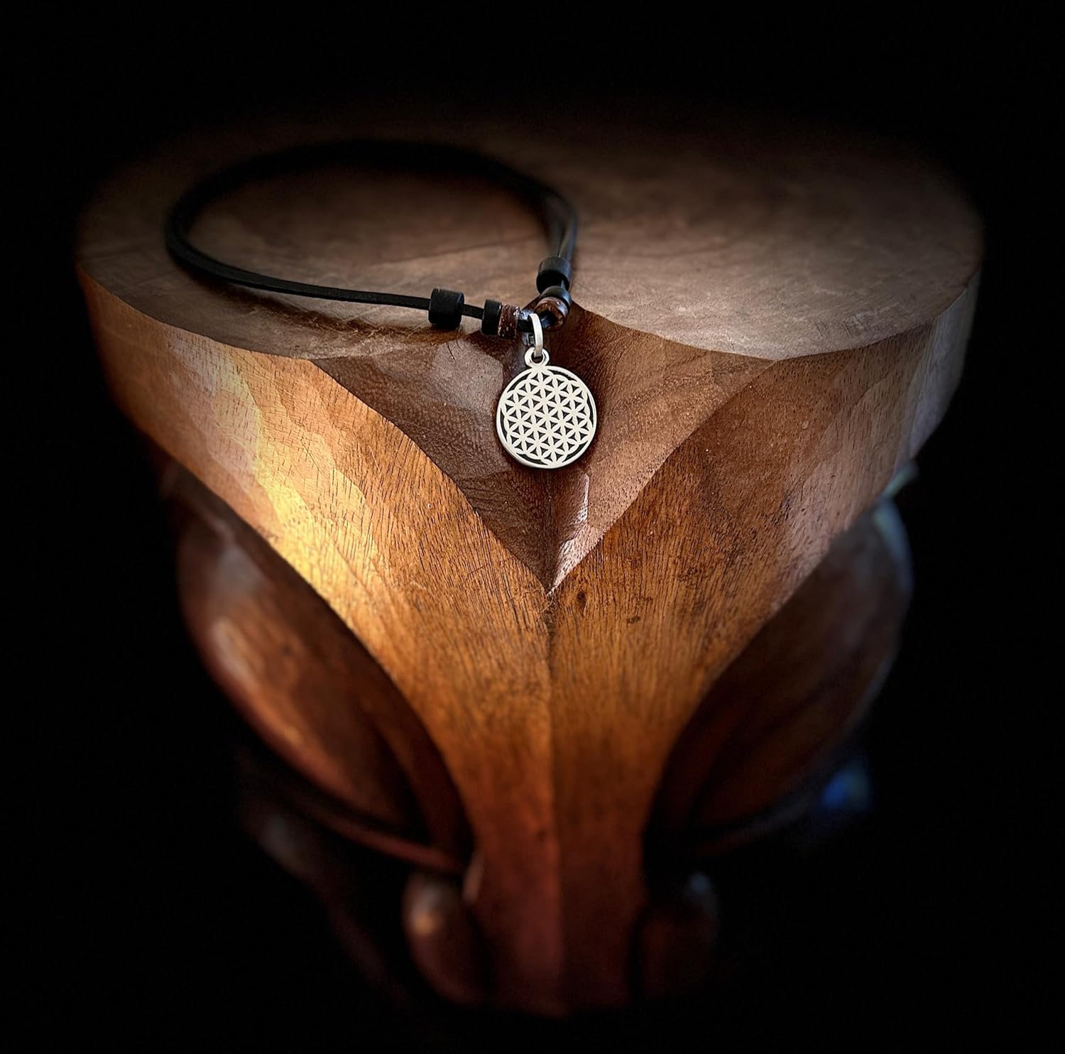 Schwarze Lederkette mit Blume des Lebens Anhänger (Größe ca. 2,5 cm), gefertigt aus feinstem Pewter (blei- & nickelfrei) - Einzigartiger Schmuck für Individualisten, der auch perfekt als Geschenk für jeden Anlass geeignet ist