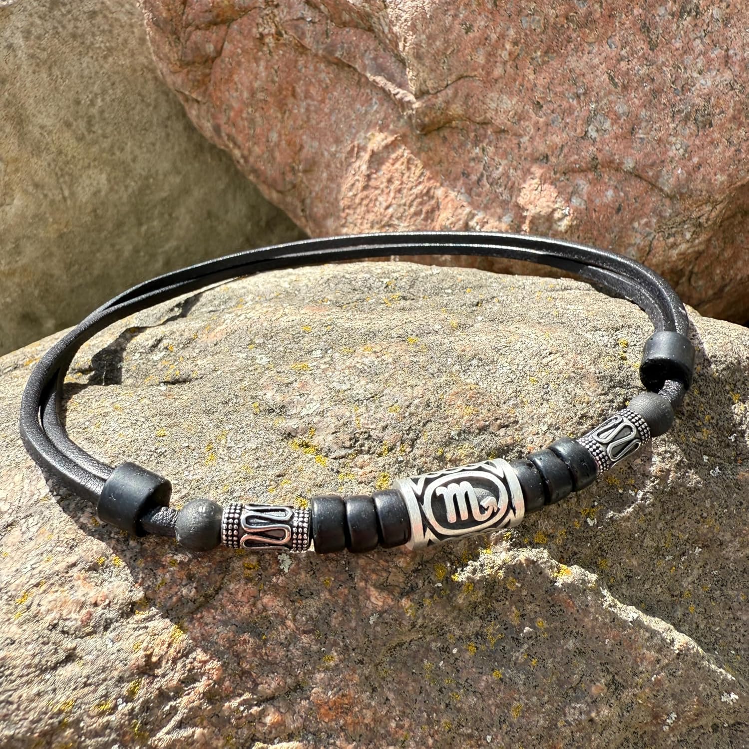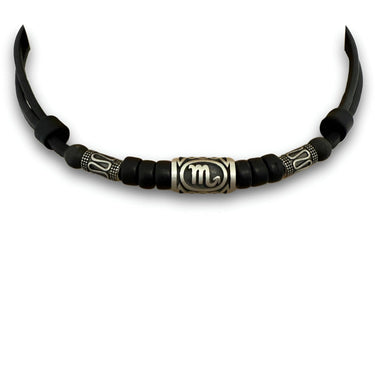 Halskette mit Sternzeichenperle"Skorpion" aus blei- & nickelfreiem Pewter, kombiniert mit Edelstahl Perlen und Kokosnuss.