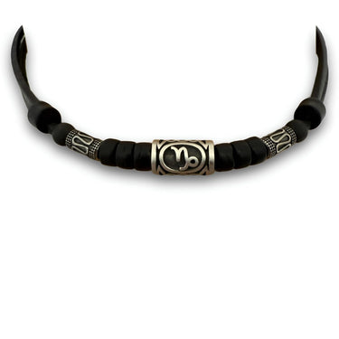 Halskette mit Sternzeichenperle "Steinbock" aus blei- & nickelfreiem Pewter, kombiniert mit Edelstahl Perlen und Kokosnuss.