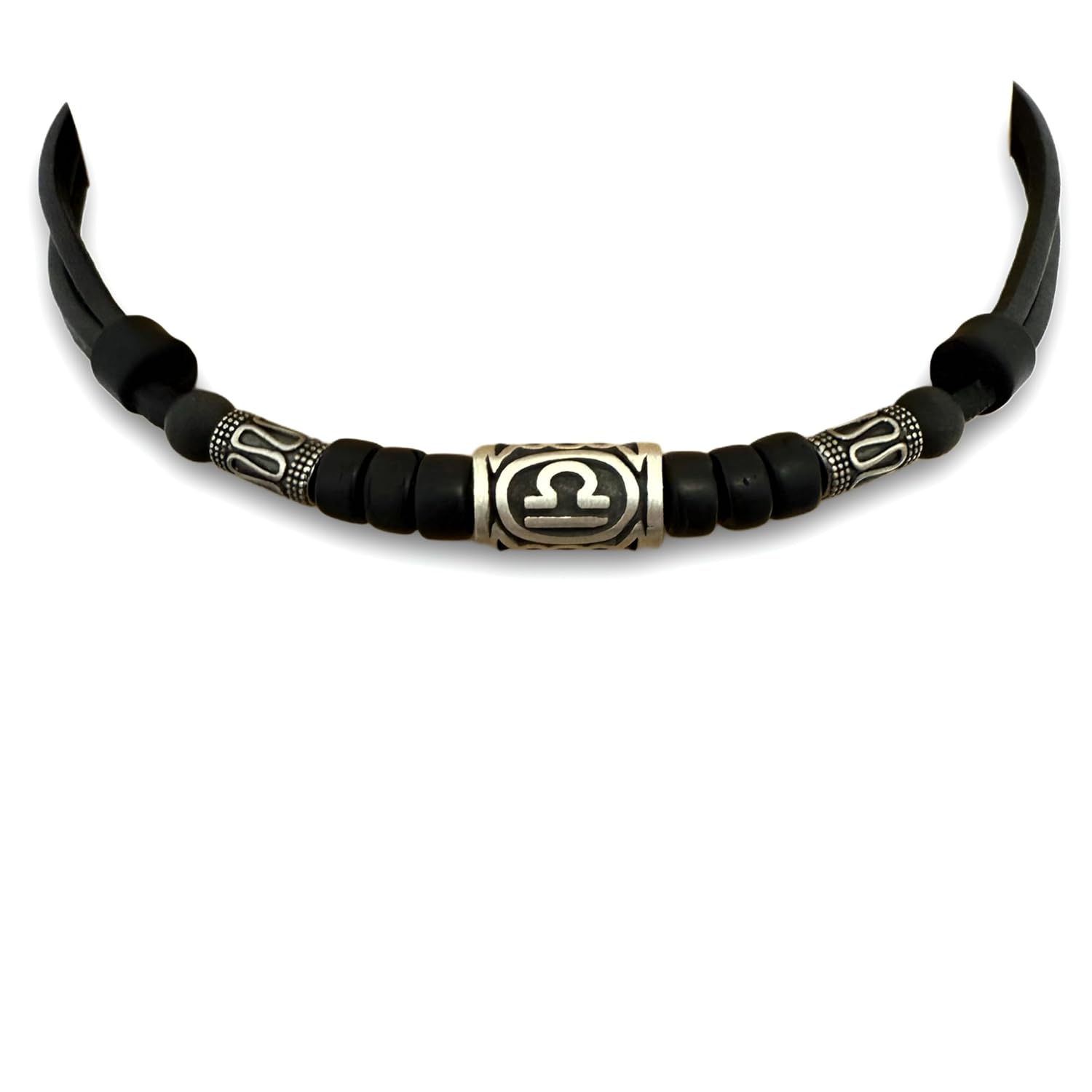 Halskette Sternzeichen Waage Edelstahl Perlen Kette Herren Damen - Modell 2155