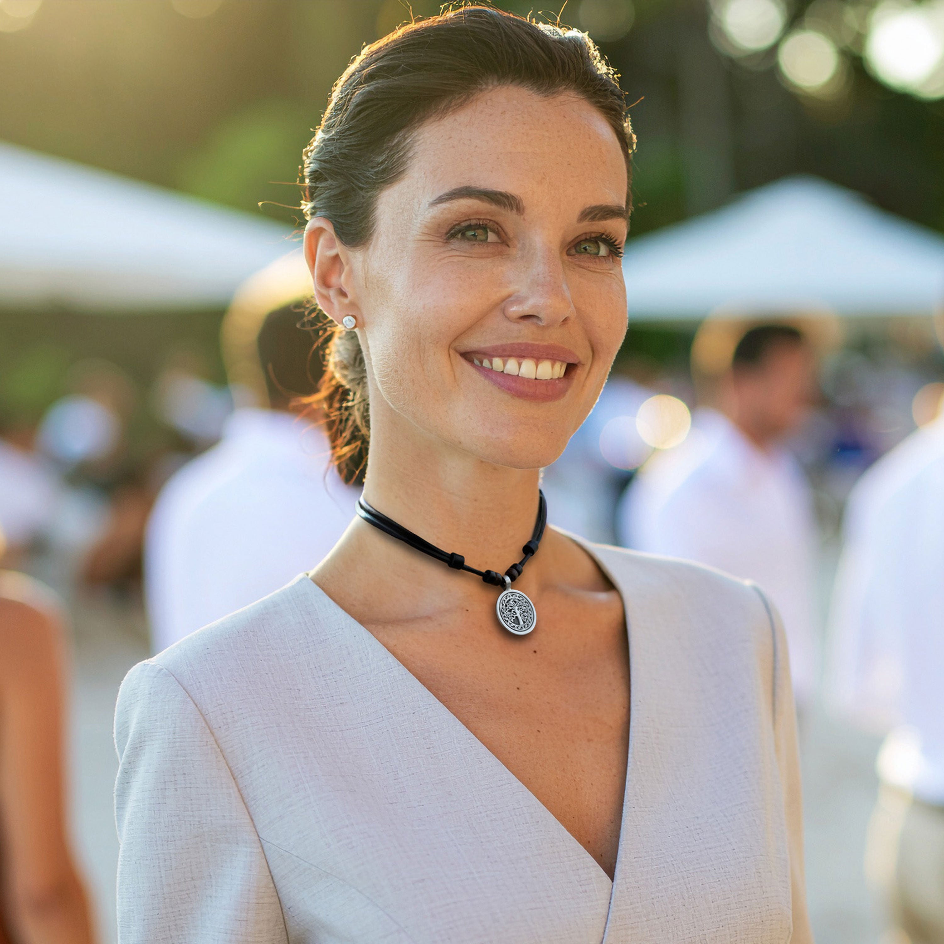 Die Größe der Halskette lässt sich per Schiebeverschluss stufenlos verstellen und passt somit für nahezu jede Halsweite. Der Verstellbereich liegt ca. zwischen 35 und 65 cm, die gewünschte Länge lässt sich schnell und einfach einstellen.