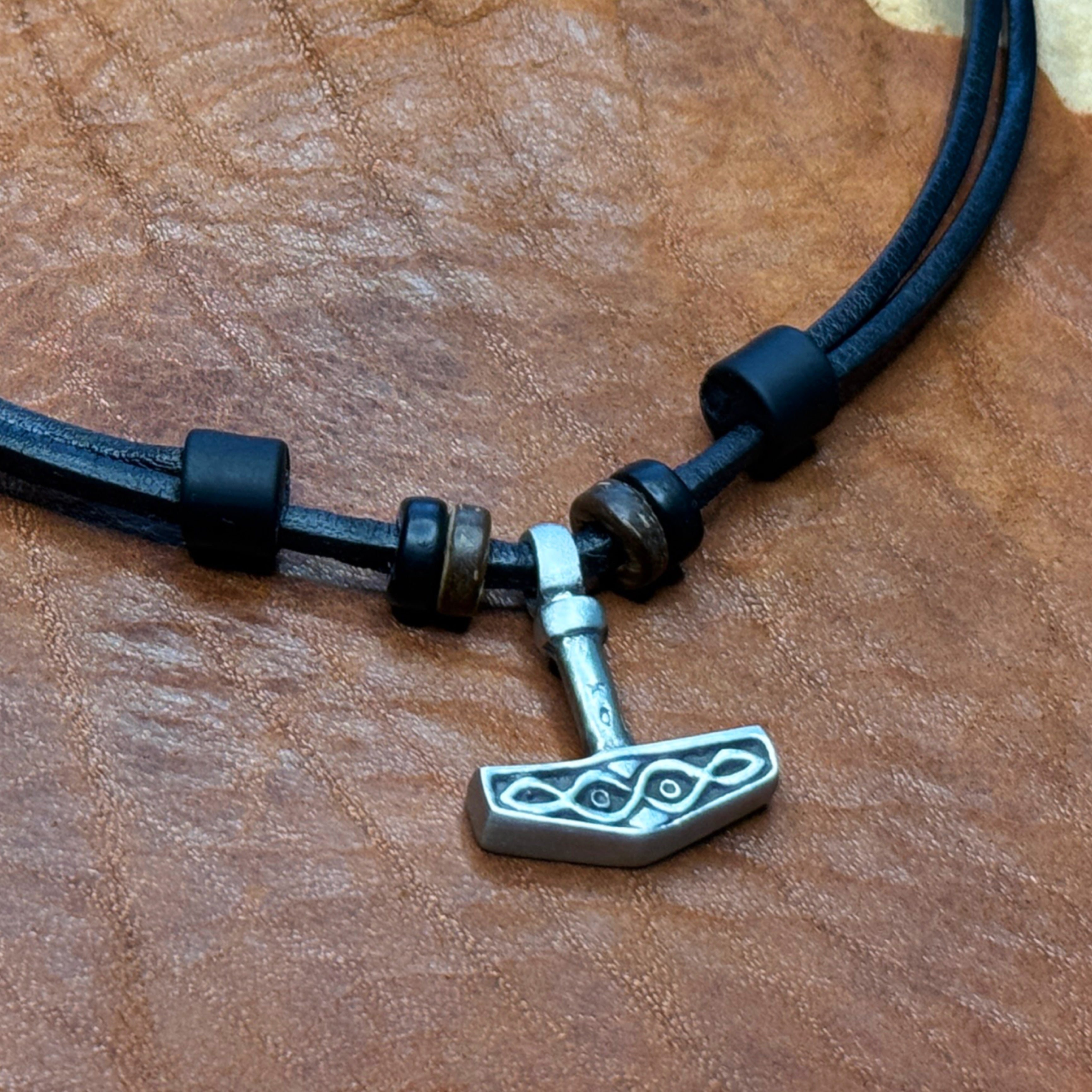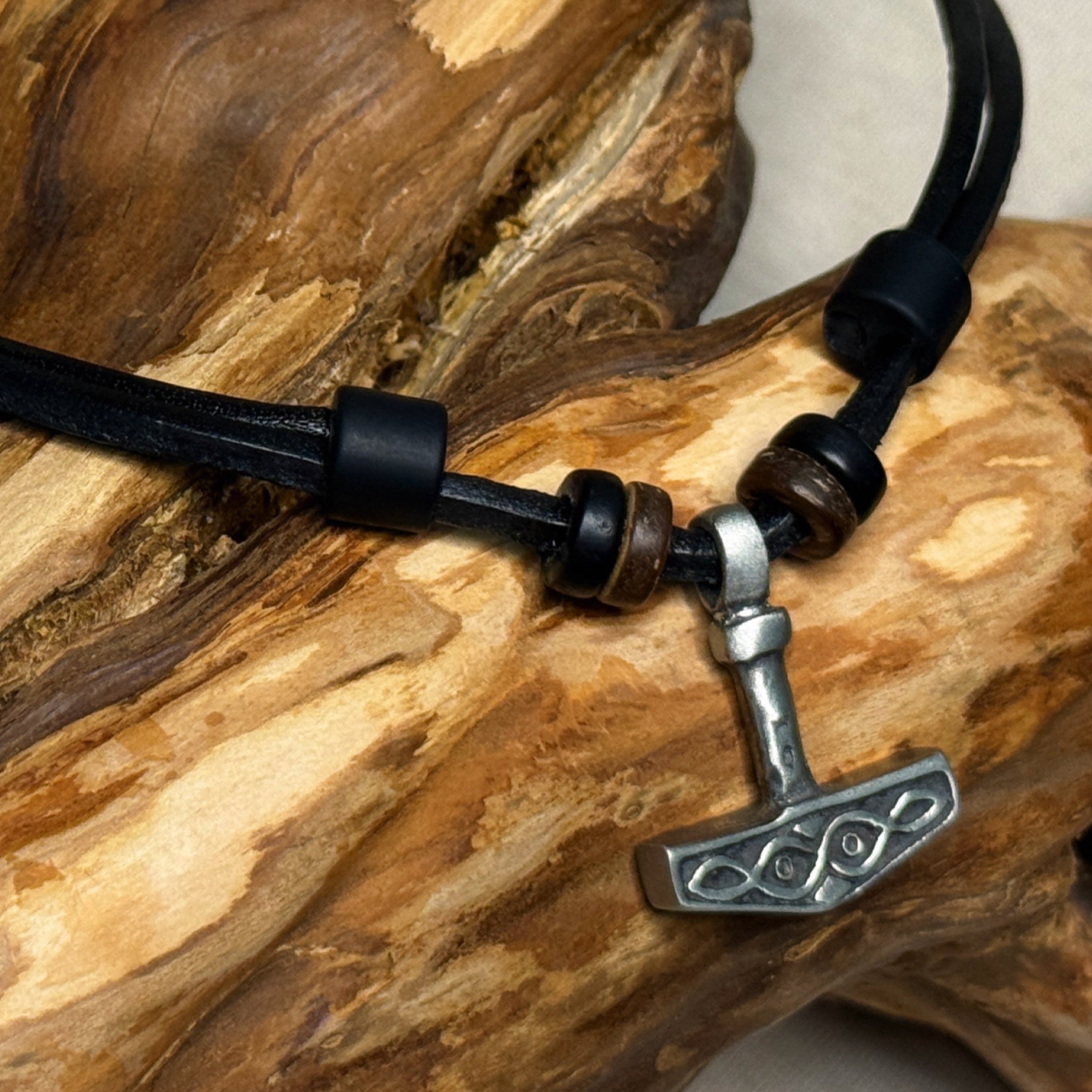 Halskette Thorshammer Mjölnir Leder Wikinger Herren Damen Schmuck - Modell 1043