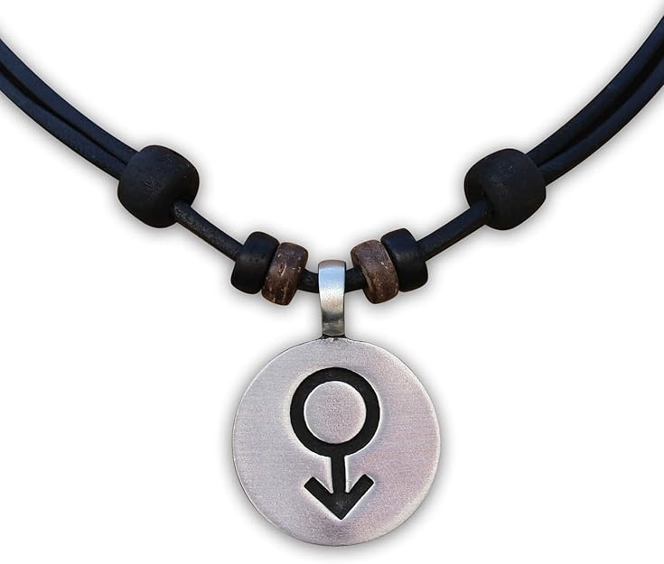 Schwarze Lederkette mit Anhänger (Gender Symbol Mann, ca. 2,8 cm) aus Pewter - frei von Nickel und Blei / Einzigartiger Schmuck für Individualisten, der, für Frauen und Männer gleichermaßen, auch perfekt als Geschenk für jeden Anlass geeignet ist