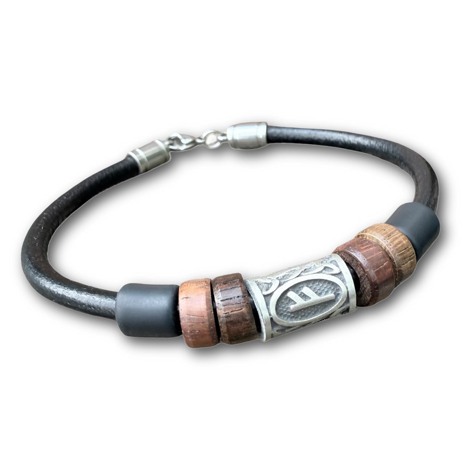 Die 4 mm starke Lederkordel sorgt für eine angenehme Haptik, während der rostfreie Edelstahl 316 Verschluss für sicheren Halt und eine individuelle Passform sorgt.